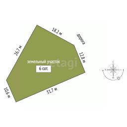 Идеальные параметры: Участок имеет удобные размеры и небольшой уклон, что открывает широкие возможности для ландшафтного дизайна и реализации любых архитектурных решений.