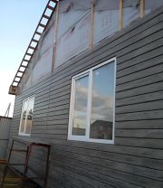 Снаружи дом облицован металлопрофилем, толщина утеплителя 15 см.