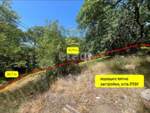 Продается участок в п. Береговое, площадью 4 сотки, недалеко от скалы Ифигения, Южный берег Крыма. Есть ГПЗУ с пятном застройки. Без сильного уклона и краснокнижных деревьев. На участок проведено электричество 15 кВт, центральная канализация. Участок располагается в тихом месте, недалеко от моря. Рядом заповедник со множеством хвойных деревьев, что делает воздух невероятно чистым. До ближайшего дикого пляжа 10 минут пешком. Рядом есть магазин.