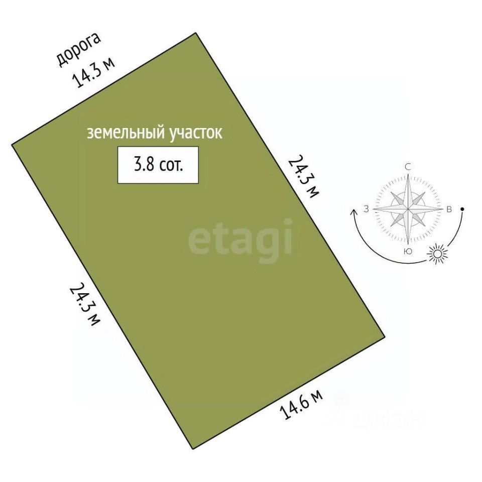 Площадь участка 3.8 сотки. Межевание сделано. Участок ровный, правильной прямоугольной формы.