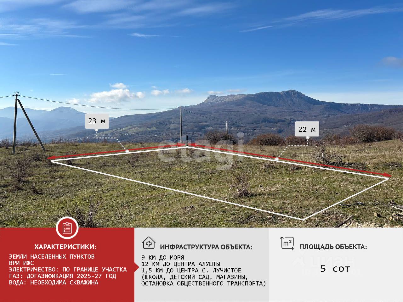 Потрясающее предложение: земельный участок площадью 5.03 соток, ровный на плато. Вам никто и никогда не закроет вид на море. Построив дом своей мечты, на данном земельном участке, вы сможете встречать рассветы и провожать закаты, ощущая на себе легкий морской бриз, под волшебные звуки волн прибоя. Участок расположен выше всей суеты курортного города и никто не будет вам заглядывать в панорамные окна. Покупайте и воплощайте свои самые смелые фантазии, даже инфинити-бассейн с морской водой. Если вы мечтатель, то вы стали на пять шагов ближе к своей мечте, читая это объявление.