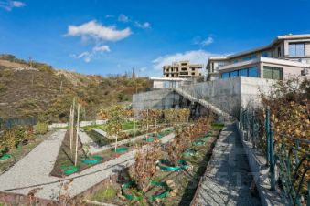 Дом построен на большом видовом участке 36,4 соток, который разбит на три уровня: основной участок под домом 23,4 сотки и два уровня по 8 и 5 соток.
