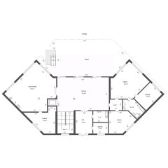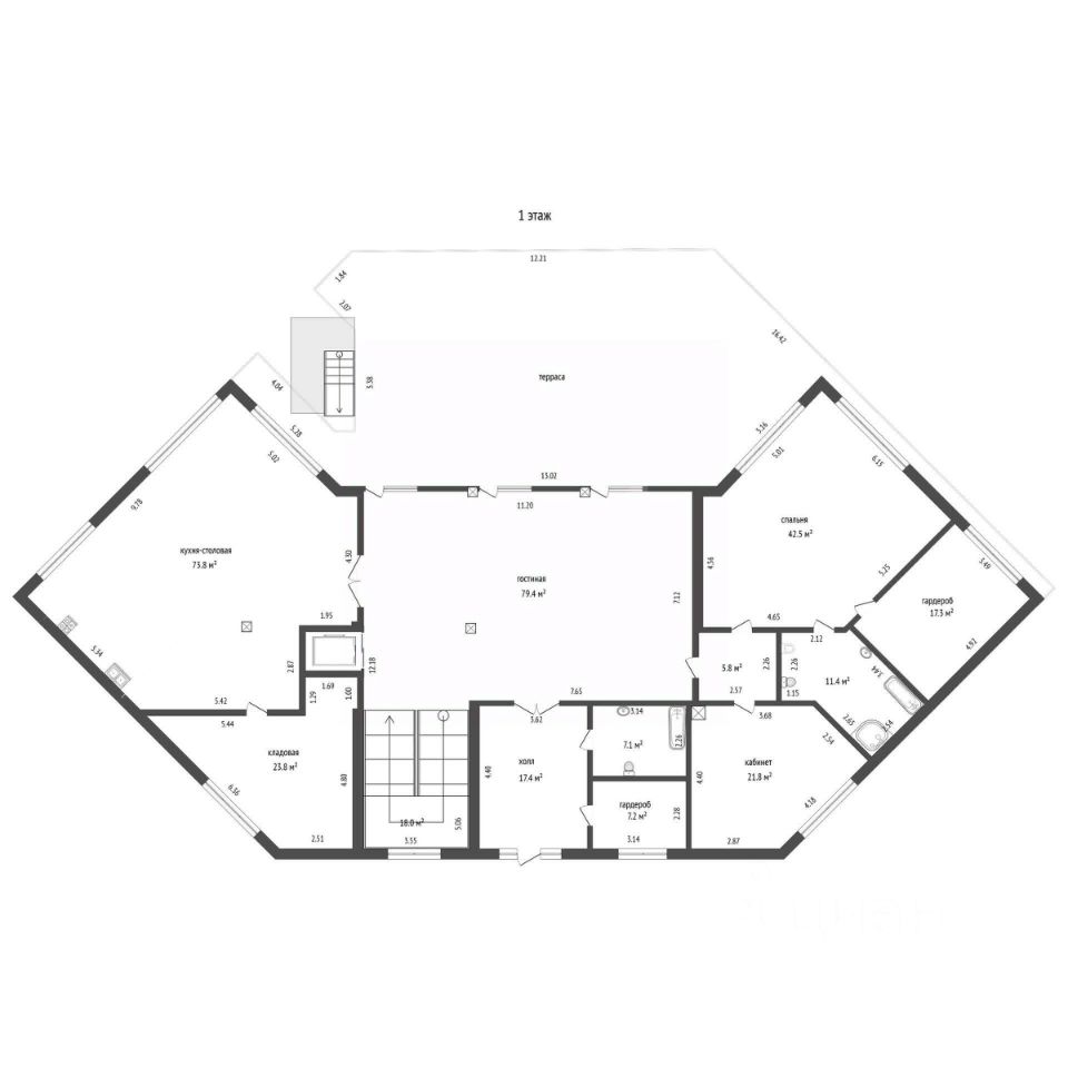 В доме 5 просторных видовых спален со своими санузлами и гардеробными. Просторная гостиная с выходом на видовую террасу. Кухня-столовая и подсобное помещение, кабинет.