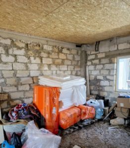На время работ можно проживать во втором, полностью готовом к эксплуатации доме площадью 33,6 кв. м. Он оформлен как дачный и оснащен для комфортного проживания: современная кухня, просторная гостиная с панорамным окном, ванная комната, кондиционер, отопление, электричество, водоснабжение и септик. Вся мебель и бытовая техника остаются новому владельцу.