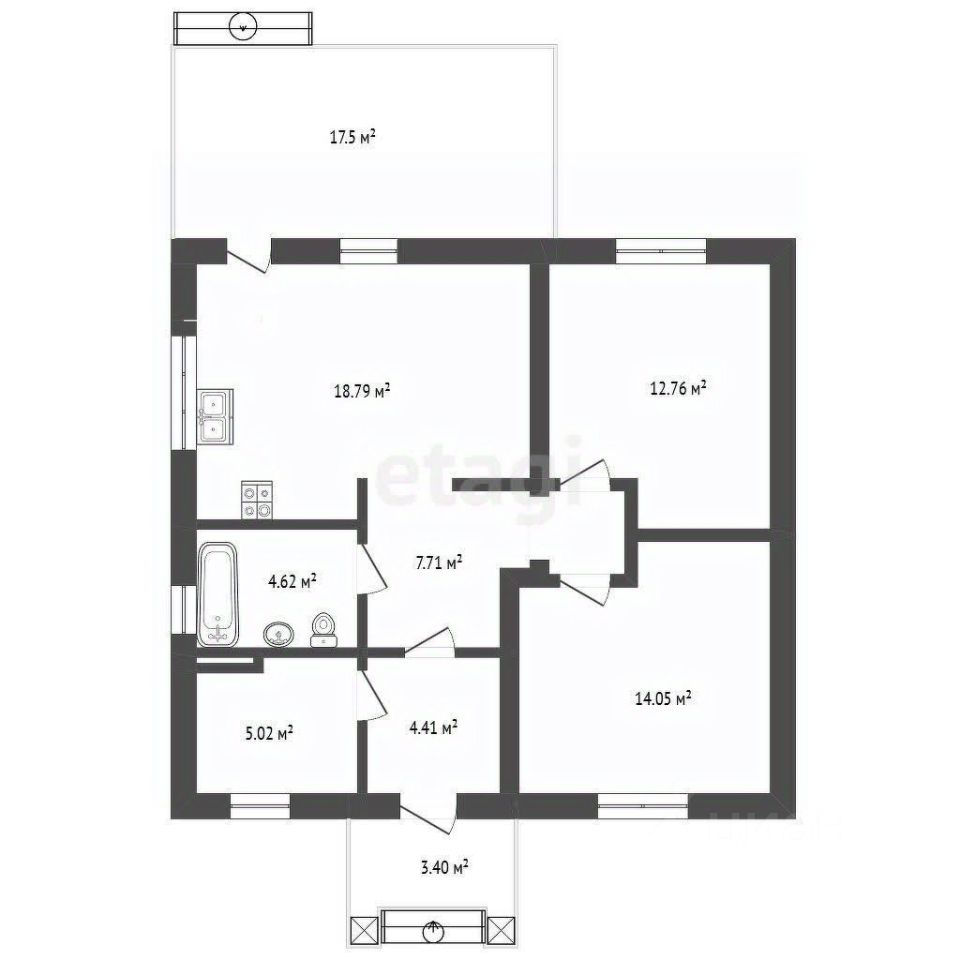 Основной дом площадью 74.3 кв. м имеет панорамный выход на террасу и зарегистрирован, что позволяет в нем прописаться. Объект требует внутренней отделки, что дает возможность создать планировку и интерьер полностью по вашему вкусу, контролируя бюджет на финальных этапах строительства.