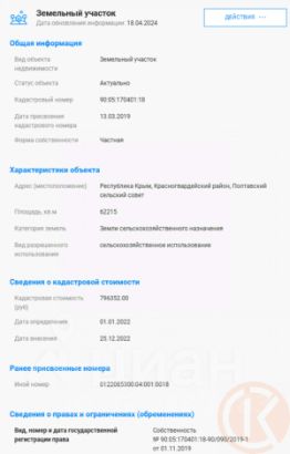 Кадастровый номер:90:05:170401:18. Проведено межевание ,есть границы участка.