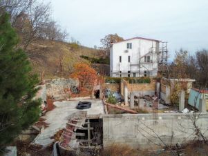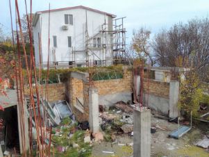 Рельеф участка ровный, на нем расположен недостроенный гостевой дом площадью 100 м2 и фундамент под основной дом. Подъезд к участку осуществляется по бетонированной дороге.