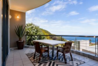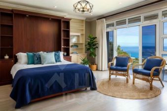 На первом этаже расположены гостиная с кухней и санузел, а на втором — три спальни с выходом на видовые балконы и террасу, откуда открывается потрясающий вид на море.