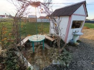 Перед домом имеется арендованная земля на которой стоит лавка для продажи овощей и недостроенные объекты коммерческой недвижимости автосервис и 3 номера для сдачи в аренду.