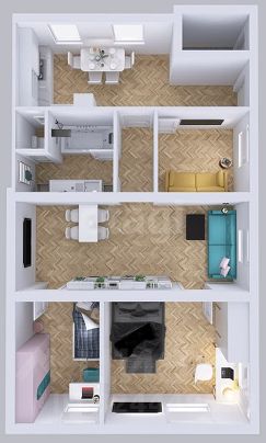 Первый дом — одноэтажный, с четырьмя просторными комнатами, есть подвал, который идеально подойдет для хранения личных вещей.