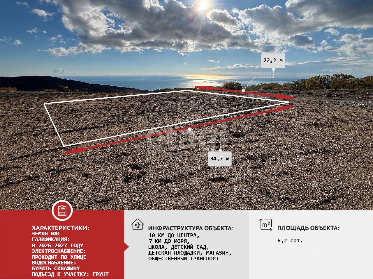 Инфраструктура поселка включает школу, детский сад, фельдшерско-акушерский пункт, магазины и рынок, обеспечивая все необходимое для постоянного проживания. Транспортная доступность высокая: до Алушты около 10 километров по региональной автодороге, удобный подъезд непосредственно к участку.