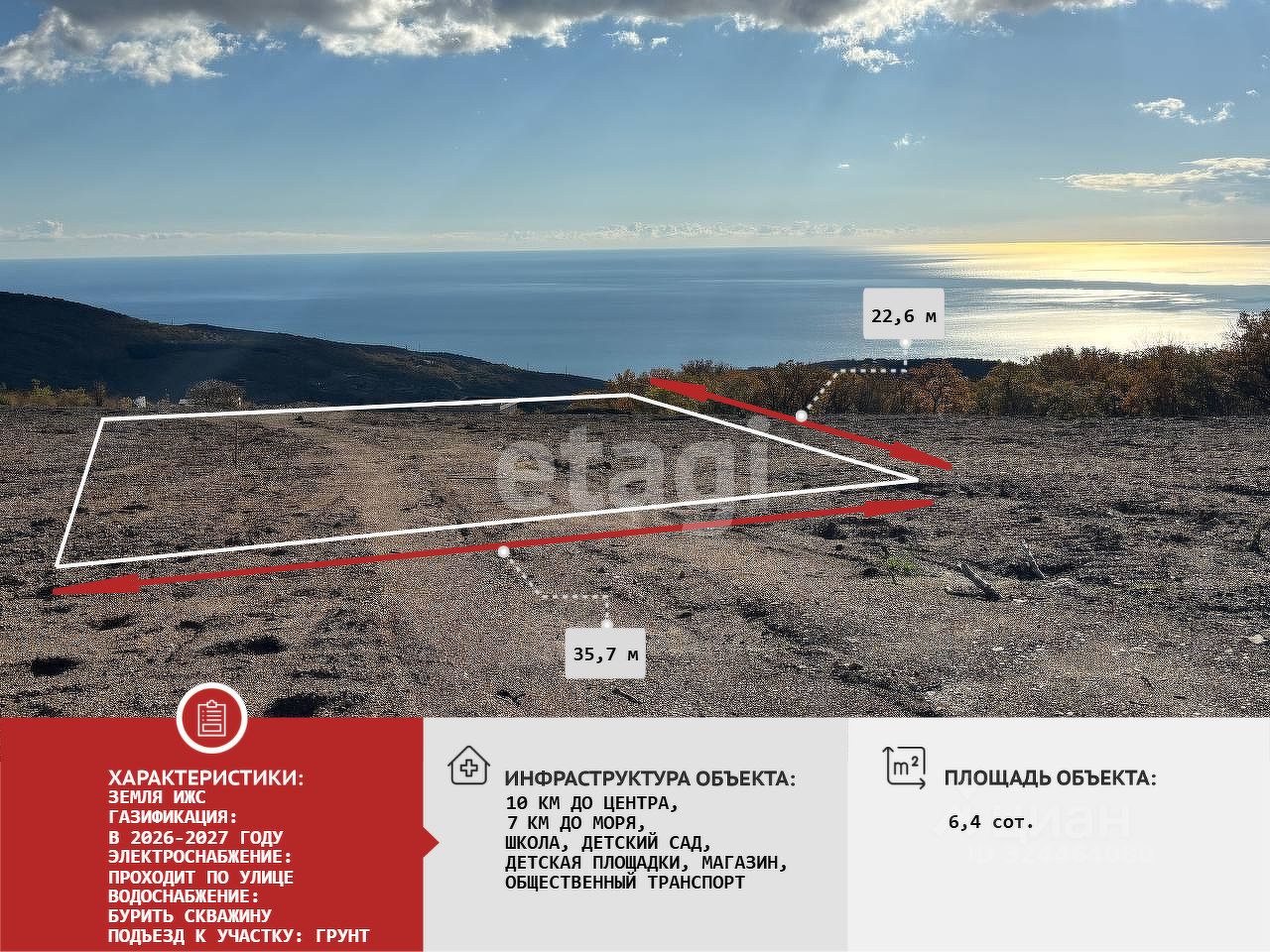 Земельный участок площадью 6,37 соток в поселке Лучистое предлагает уникальную возможность для строительства дома на Южном берегу Крыма.