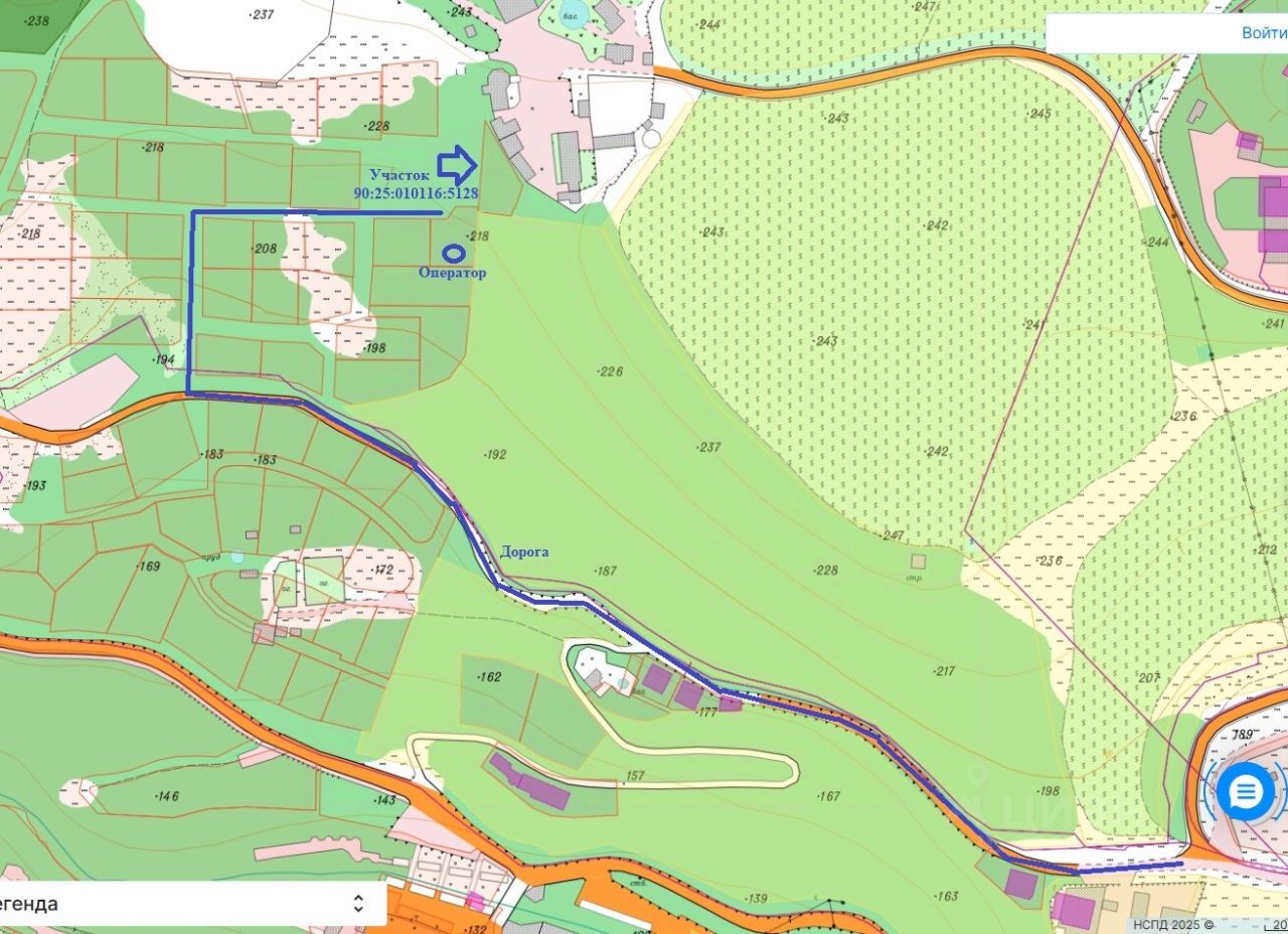 Дорога к участку находится снизу, и проходит через территорию будущего закрытого охраняемого коттеджного поселка.
