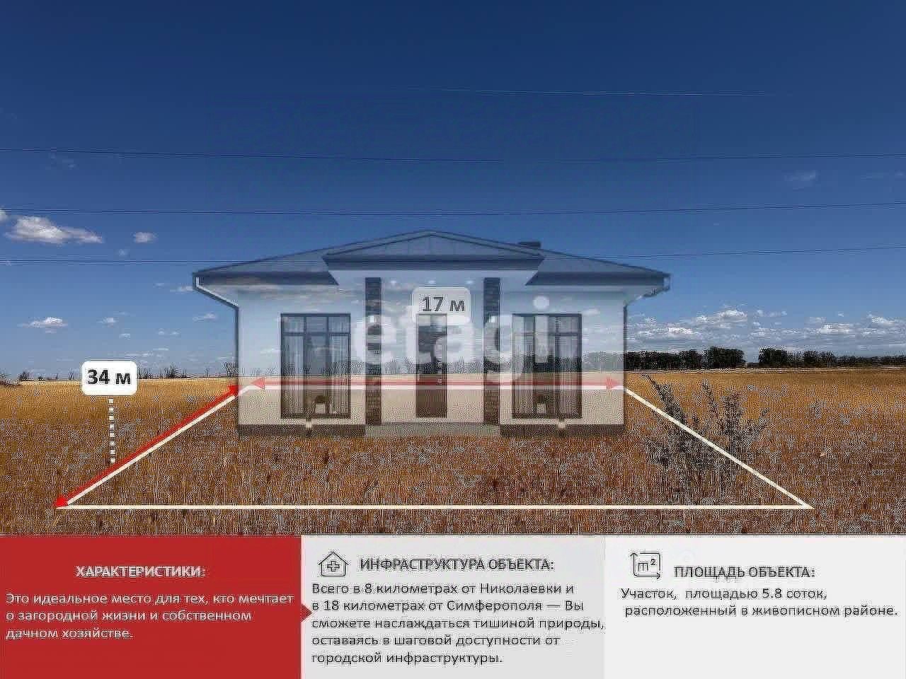 Продается уникальный участок площадью 5.8 соток, расположенный в живописном районе, недалеко от села Винницкое Симферопольского района! Это идеальное место для тех, кто мечтает о загородной жизни и собственном дачном хозяйстве. Участок имеет статус сельхозназначения, что позволяет вам не только вести дачное хозяйство, но и строить жилой дом, создавая уютное пространство для жизни и отдыха. Всего в 8 километрах от Николаевки и в 18 километрах от Симферополя — вы сможете наслаждаться тишиной природы, оставаясь в шаговой доступности от городской инфраструктуры. Дорога к участку удобная — вы легко доберетесь как на автомобиле, так и на общественном транспорте. Рядом с участком проходят электрические сети, что обеспечит вас необходимыми ресурсами. Газовая труба находится всего в 300 метрах, а для водоснабжения вам потребуется пробурить скважину. В самом населенном пункте есть все необходимое для комфортной и полноценной жизни круглый год: магазины, школы, медицинские учреждения и многое другое. Это место идеально подходит как для постоянного проживания, так и для отдыха на выходных. Не упустите возможность стать владельцем этого замечательного участка! Звоните прямо сейчас, чтобы узнать подробности и записаться на просмотр. Ваше новое будущее начинается здесь!