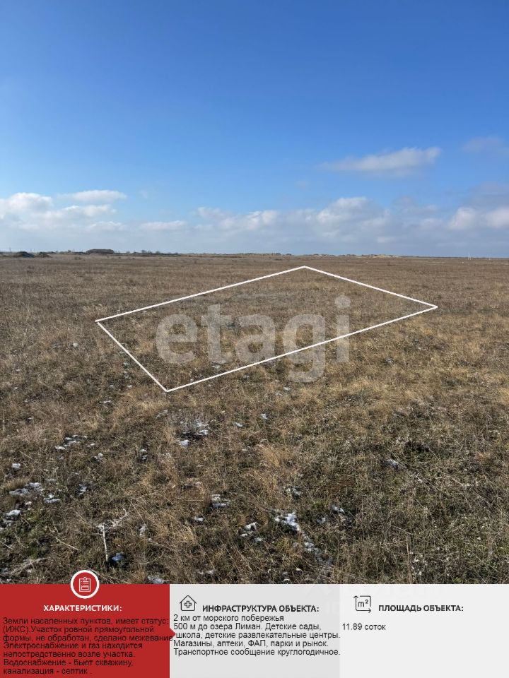 Участок расположенный в 2 км от морского побережья прекрасных песчаных пляжей и чистейшего моря и 500 м до озера Лиман. В границе села есть вся необходимая инфраструктура, такая как: детские сады, школа, детские развлекательные центры. Магазины, аптеки, ФАП, парки и рынок находится в пешей доступности. Транспортное сообщение круглогодичное.