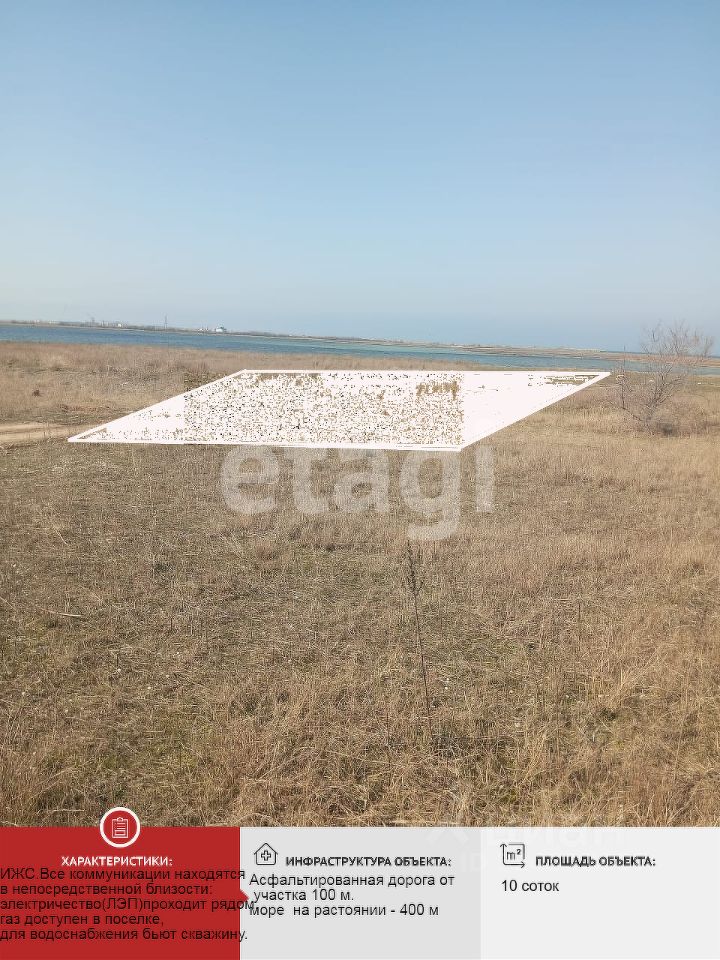 Участок площадью 10 соток, идеально подходящего для индивидуального жилищного строительства. Участок ровный и имеет правильную прямоугольную форму.