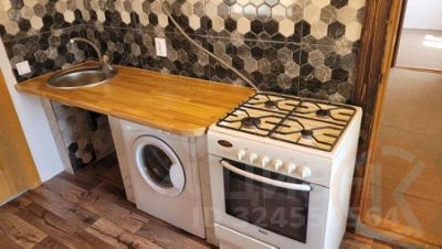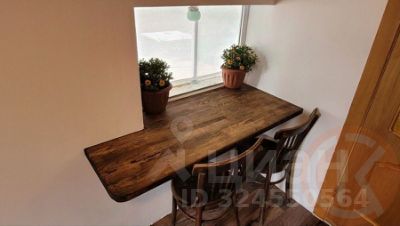 B куxнe, cтолeшницa и обеденный cтoл сделаны из ясеня, потолки так же обшиты вагонкой.