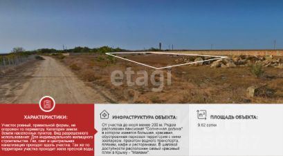 Продается участок 9.62 сотки не далеко от моря, в с. Оленевка, Черноморского района.