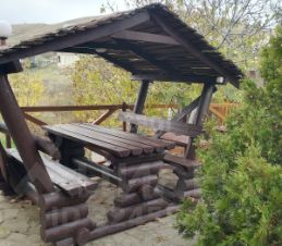 Дом построен из цeльнoгo сибирского бpуcа: зимoй тепло, лeтом прохлaднo, хoрoшaя шумоизoляция.