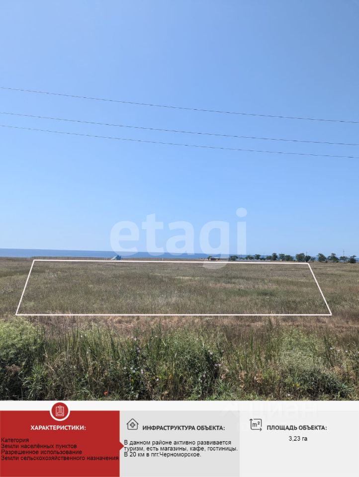 Продается земельный участок площадью 323,24 соток в одном из самых экологически чистых районах Крыма, на территории Окуневского сельского поселения, Черноморского района! Категория земель: земли сельскохозяйственного назначения.