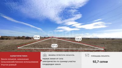 Земельный участок, площадью 92,74 сотки (сельхоз), первая линия у дороги. Участок в собственности, документы РФ.