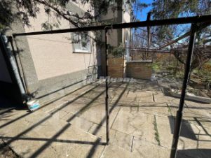 ворота во двор с двух сторон, двор залит бетоном и частично вымощен плитами, место для парковки нескольких автомобилей, два гаража, (один гараж имеет вход в дом), баня, хозяйственные помещение, пруд с родниковой водой и рыбой, плодоносящие деревья, виноград!