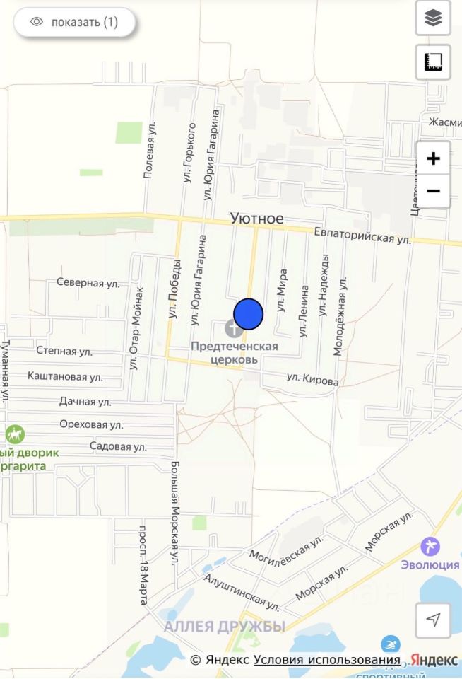 Продается участок ИЖС в центре села Уютное. Все коммуникации проходят по границе участка : газ, свет, вода. Центральная асфальтированная улица. Участок ровной формы ,идеально подойдет для строительства жилого дома.
