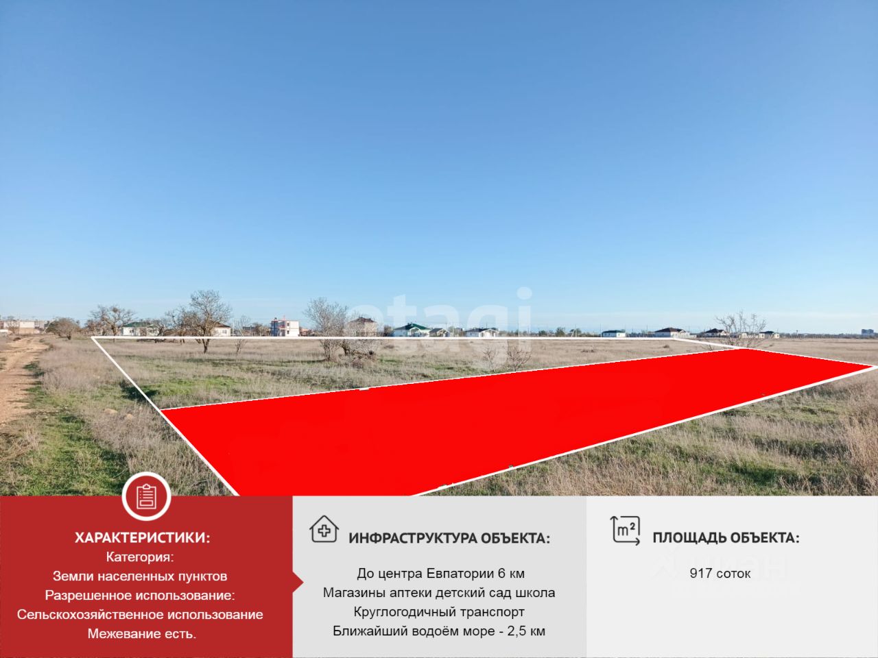 В продаже земельный участок площадью 917 соток на расстоянии 2500 метров от уреза Черного моря.