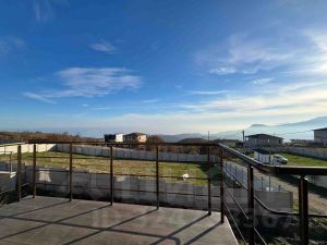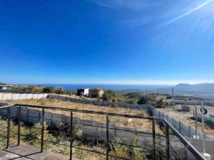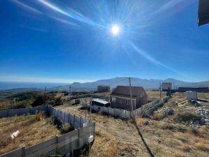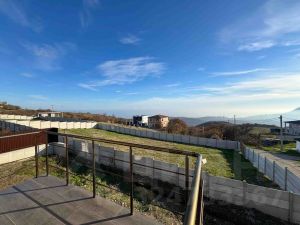 Участок спланирован, установлен забор, подъезд отсыпанный щебнем и крошкой асфальтной. Вид на море, город и горы.