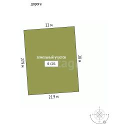 Общая площадь - 6 соток. Это ровный и сухой земельный участок, ровной прямоугольной формы.