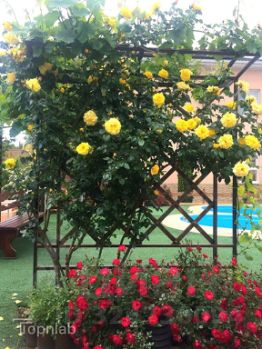 - Красивый зелёный двор с декоративными растениями, цветами, зоной барбекю и открытым летним душем.