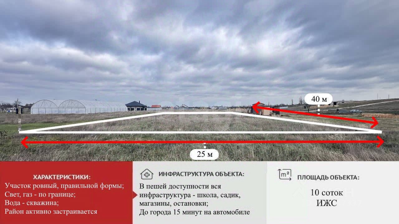 Вокруг участка идет интенсивная застройка. Рядом началось строительство детского сада. Магазины, рынок, аптеки все в шаговой доступности.