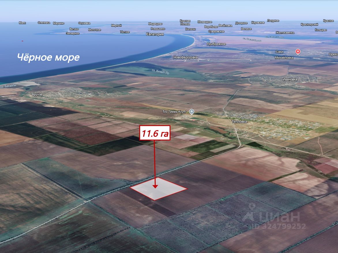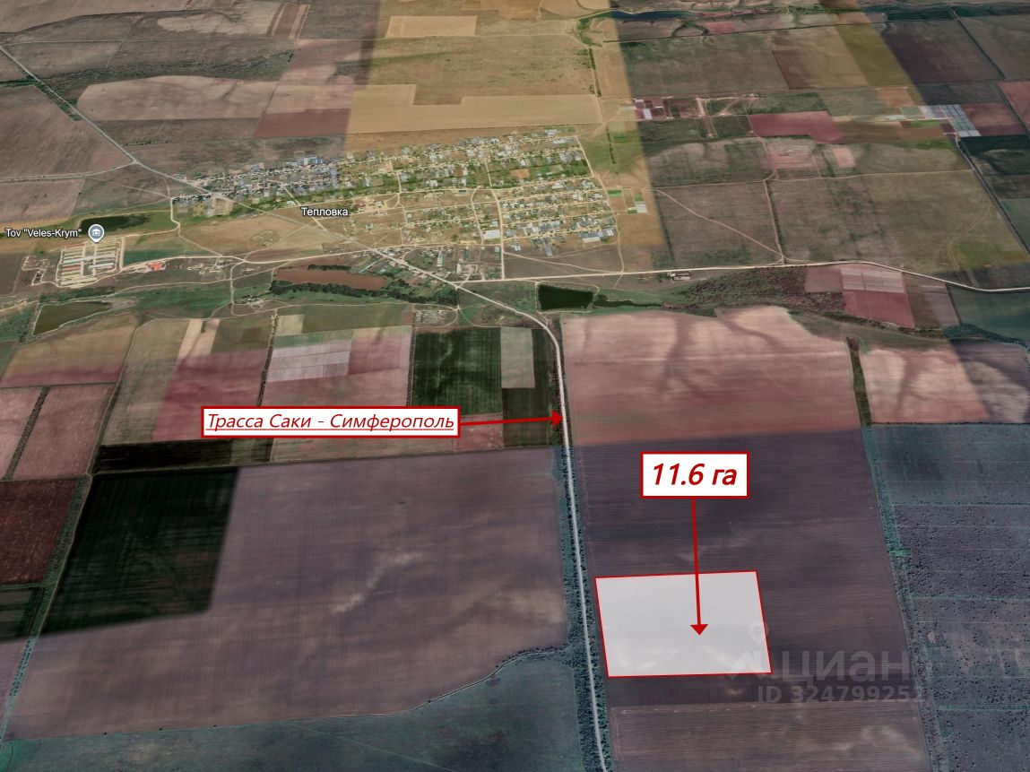 Продается земельный участок 11.6 га. В 1850 м от с. Тепловка, Симферопольского района, Николаевский сельсовет. Назначение земли под сельскохозяйственное использование. Право собственности РФ. Фасад вдоль трассы Саки Симферополь 240 м. Участок ровный. правильной формы. Земля плодородная.