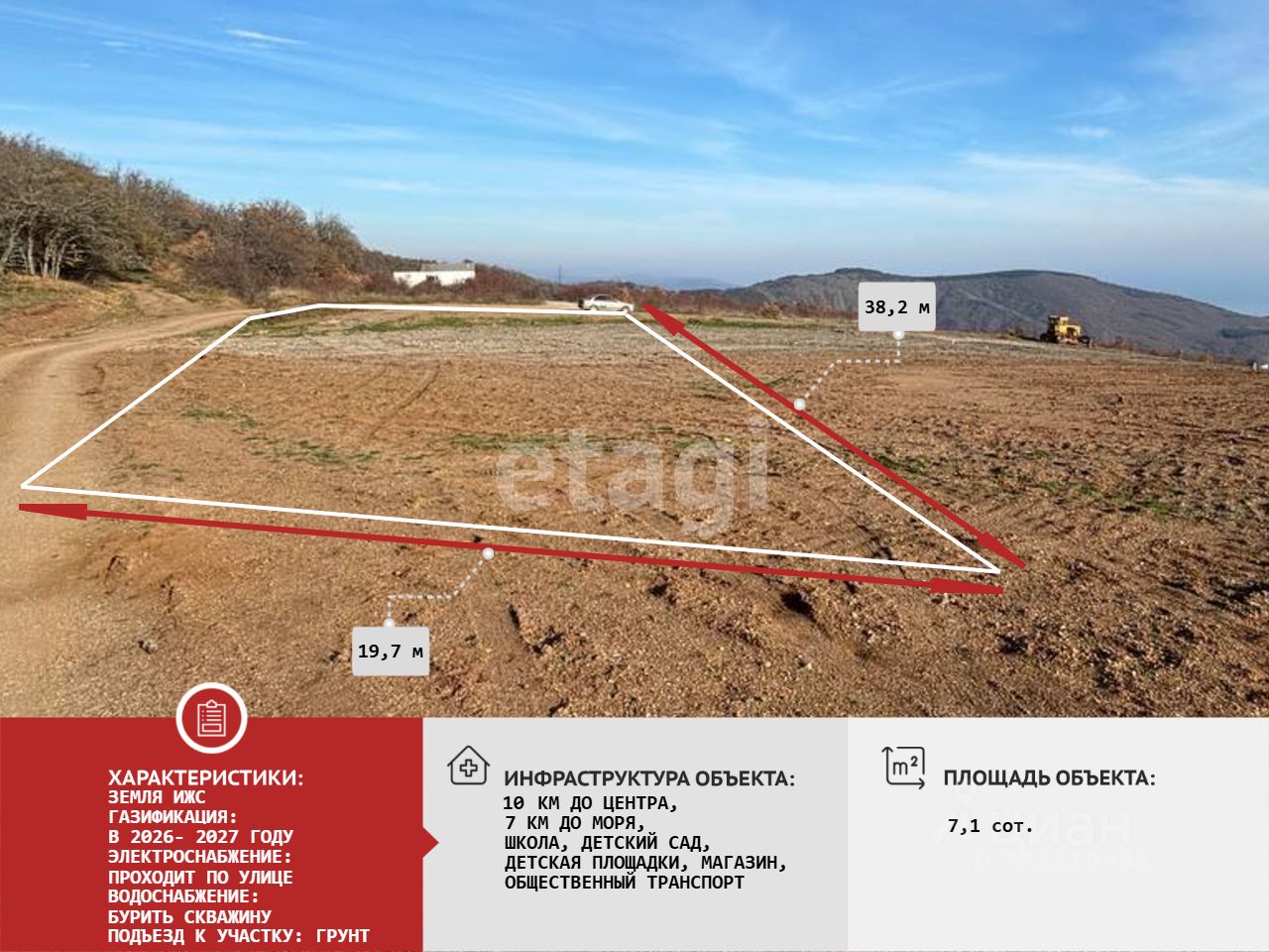 Участок площадью 7.11 сотки в селе Лучистое предлагает редкую возможность построить дом с панорамными видами на море и горный массив Чатыр-Даг. Земля относится к категории населенных пунктов с разрешенным использованием под ИЖС (зона Ж-1-2), что обеспечивает правовую чистоту и простоту дальнейших согласований.