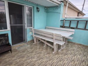На втором этаже две комнаты (в каждой по две односпальные кровати и шкаф с тумбочкой, интернет), прихожая, двуспальный диван, санузел. На третьем этаже комната-студия (двуспальный диван, кухонная зона, холодильник, микроволновая печь, обеденный стол, бойлер, кондиционер, стиральная машина, телевизор, интернет) и терраса (большой деревянный стол, две скамьи, мангал).