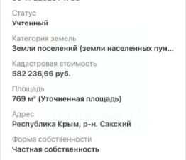 Продается земельный участок ИЖС площадью 7.69 соток по адресу Республика Крым, р-н Сакский, с. Уютное. Участок ровный прямоугольной формы. По границе участка проходит центральный водопровод, ГАЗ. До центра города 1 км. до городского пляжа 2 км. В селе хорошо развита инфраструктура, имеются по близости: Сто, шиномонтаж, строительные магазины, продуктовые магазины, школа, детский сад. Кадастровый номер участка:90:11:220201:1798