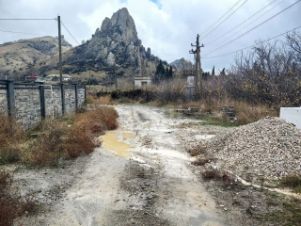 Коммуникации: Электрические столбы уже подведены на нижнем плато и до продаваемого участка расстояние 200 метров. Вода привозная.