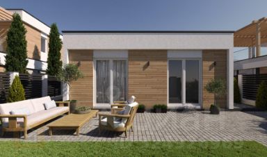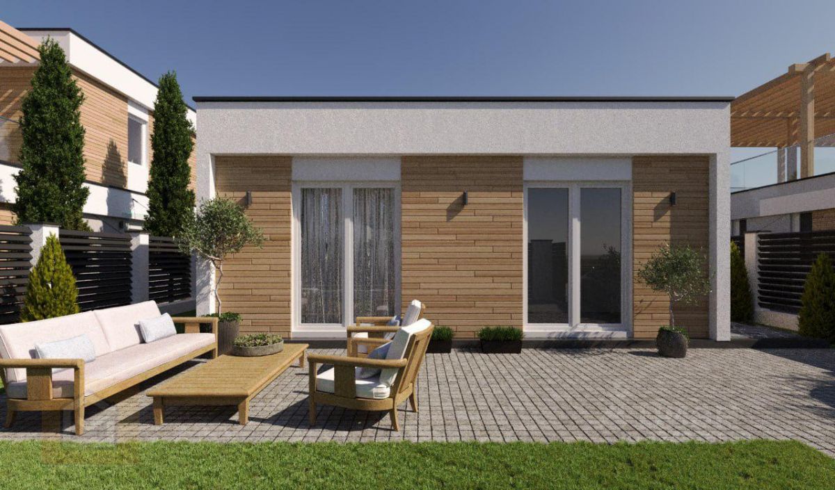 Современный дом площадью 72,8 кв.м на участке 3 сотки в живописном дачном поселке "Сияние", расположенном всего в 7 км от Симферополя.