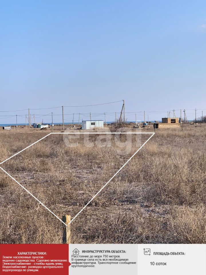 Общей площадью 10 соток. Участок находится на территории земли населенных пунктов, имеет статус: ведение садоводства. На данном участке можно построить капитальное строение со статусом жилое.