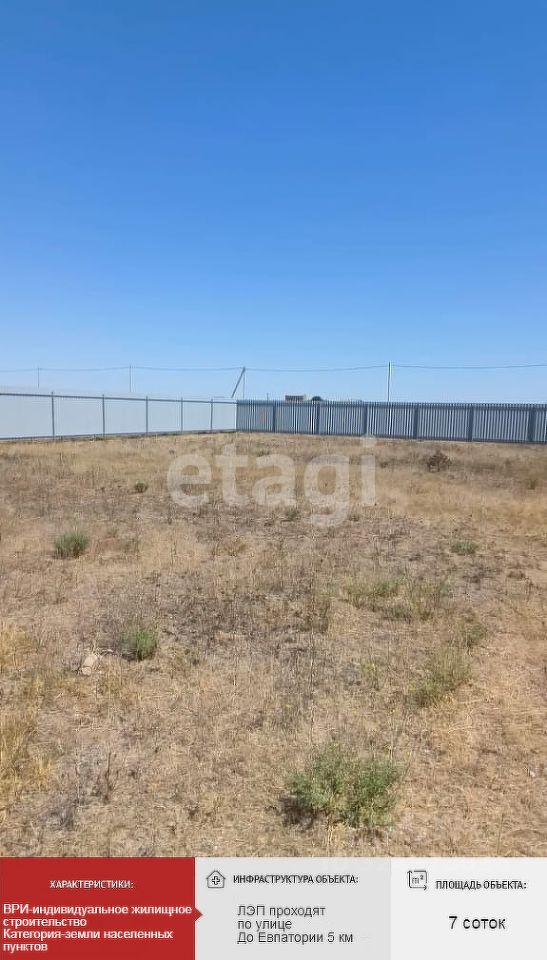 Рядом: магазины,школа,детский садик.Остановка общественного транспорта. В поселке открыт " Ледовый дворец" спортивная школа Ильи Авербуха "Наследие". В 2-х., километрах академия "Арена-Крым". Спортивный комплекс "Эволюция " находится от поселка в 5ти км. До моря 5км. До детской здравницы курорта Евпатория _--5км. Инвестируйте в строительство, так как недвижимость каждый год только растет в цене!