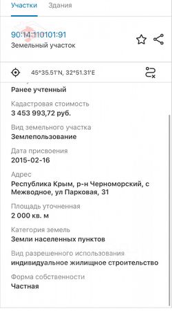До моря- 900м, до лимана с лечебной грязью - 850м. Проект на газификацию новых улиц с. Межводное уже прошел гос.экспертизу и подлежит реализации в ближайшее время, затем Администрация с/поселения будет решать вопрос по подведению ц/водопровода. Для подключения э/энергии, владелец подает заявку в РЭС для подключения, т.к линия э/передач уже проведена.