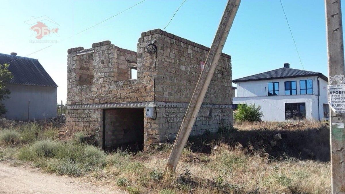 Продается участок с недостроенным домом, в 15 минутах от города Евпатория. Рядом находится остановка общественного транспорта, участок находится около дороги. На участке стоит недострой, коробка дома в 2-а этажа из кирпича.
