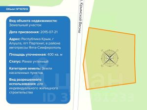 Продается земельный участок в поселке городского типа Партенит (Алушта) улица Крымской весны.