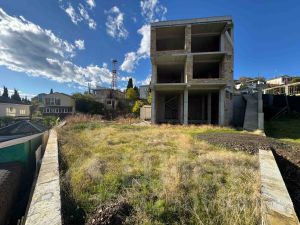 На территории стоит монолитное 3-х этажное здание, планировалось как гостевой дом с гаражом, общей площадью около 240 м2 с открытой террасой.