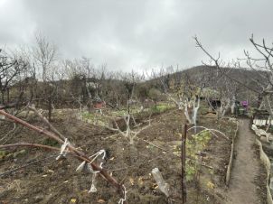 8 соток по факту 9, вода, газ по периметру участка. Сад с фруктовыми деревьями (инжир, яблоки, груши, клубника, малина, смородина. Удобный подъезд для строительства.
