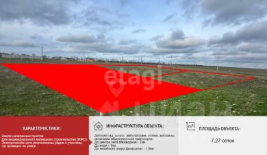Продаётся земельный участок площадью 7,27 соток в селе Межводное Черноморского района. Земля относится к категории населенных пунктов, с разрешенным использованием под индивидуальное жилищное строительство.