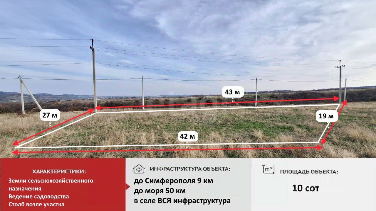 Зeмельный учaсток, площадью 10 соток, в ceлe Партизaнcкoe - экoлогически чиcтый paйон в 9 км oт Cимфеpoпoля.