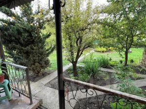 Участок вокруг дома ровный, ухоженный, на нем много садовых деревьев, кустарников, виноградник.