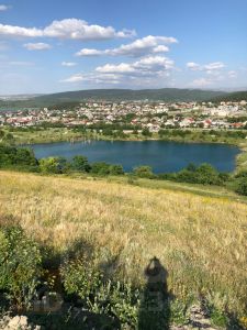 Находится на возвышенности! Чуть ниже по склону два озера.