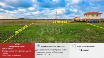 Площадь - 10 соток, размеры - 25 на 40 метров!
